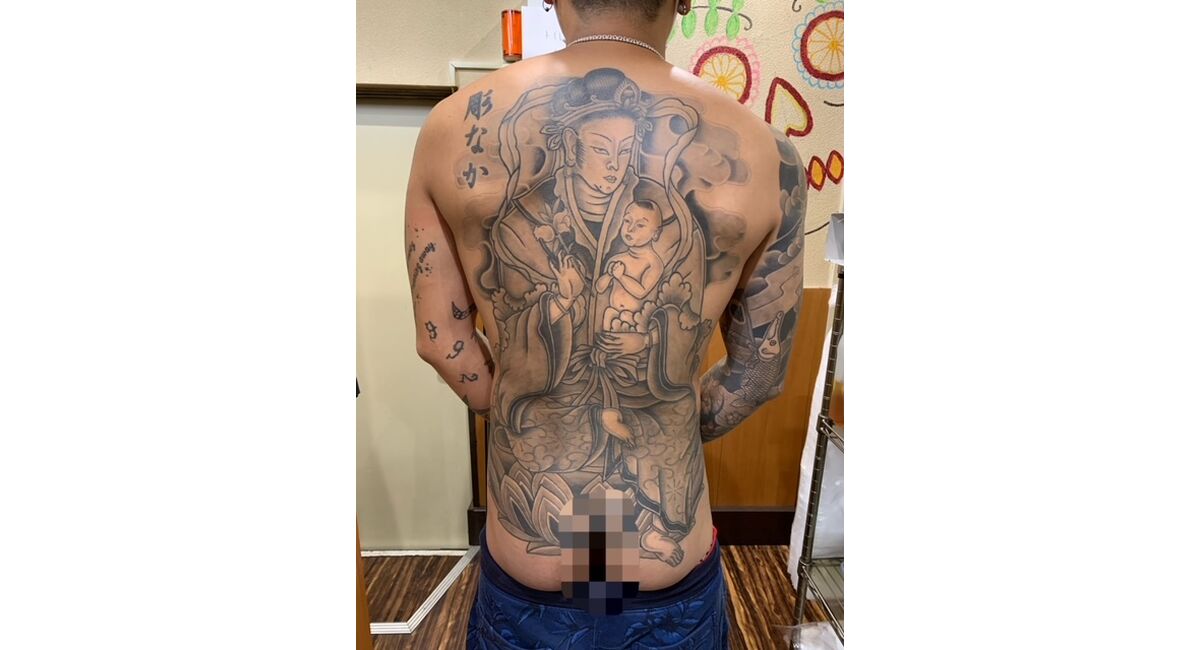 鬼子母神と言うお仕事の依頼を受けた時、ちょっとイメージが沸かず、色々な彫師の方の作品を参考にしました。デザインをしていく中で、極力、お客様のご意見を取り組む努力は致しております。無事に完成までたどり着けました。有難う御座います。引き続き、ごひいきの程宜しくお願い致します。