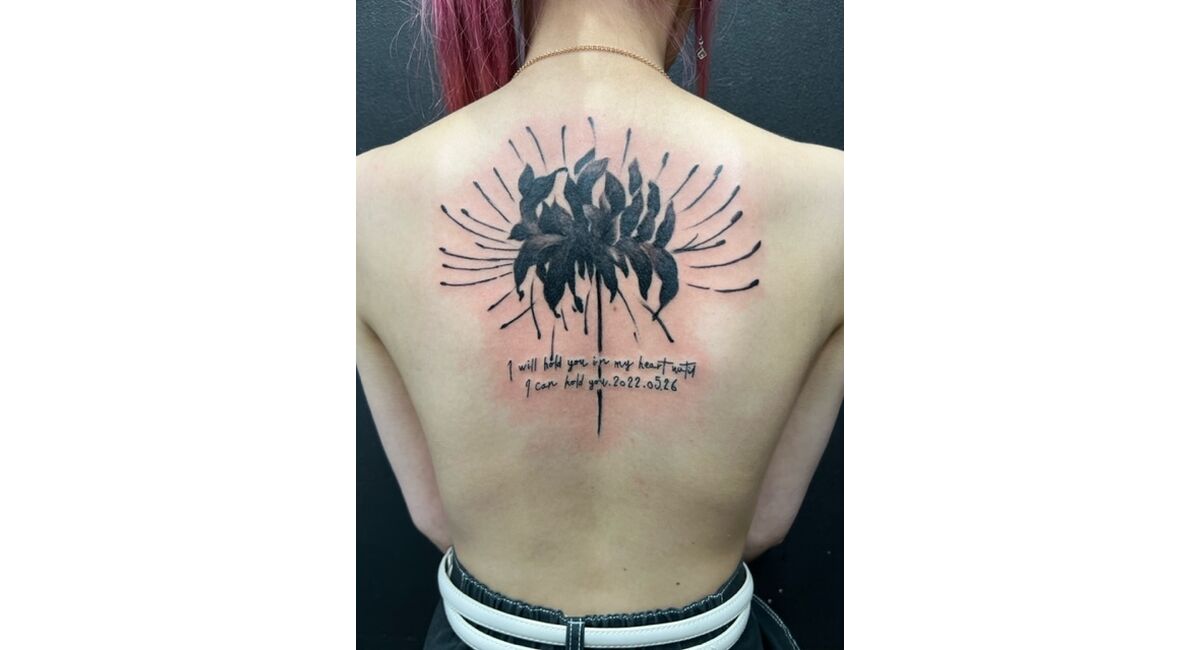 2年ぶりのご来店有難う御座います。今回のオーダーは彼岸花と英文です。色々とお客様の思いもあるでしょう、少しでも良い作品になるように日々努力致します。8月まだ、空きが御座います。問い合わせ随時受付中です。極力、お電話での問い合わせが有難いです。